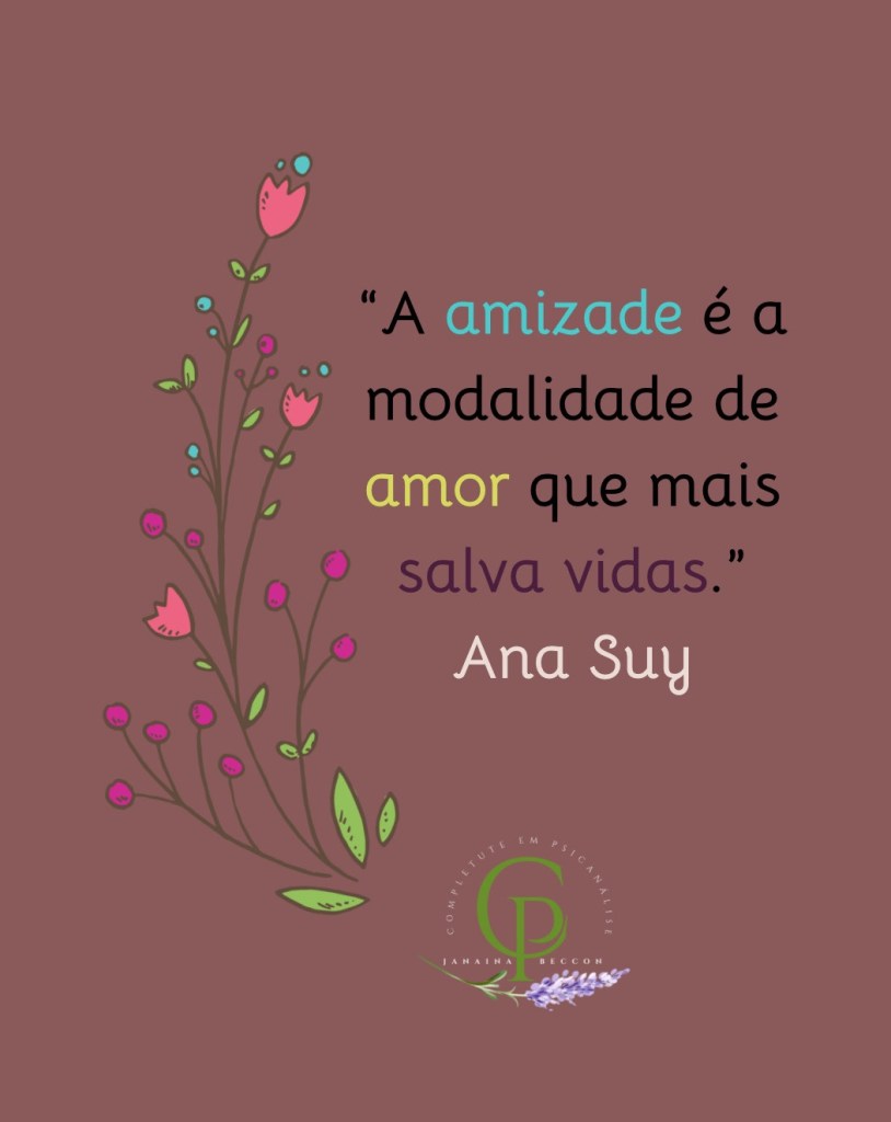 “A amizade é a modalidade de amor que mais salva vidas”, frase da psicanalista e escrita Ana Suy.